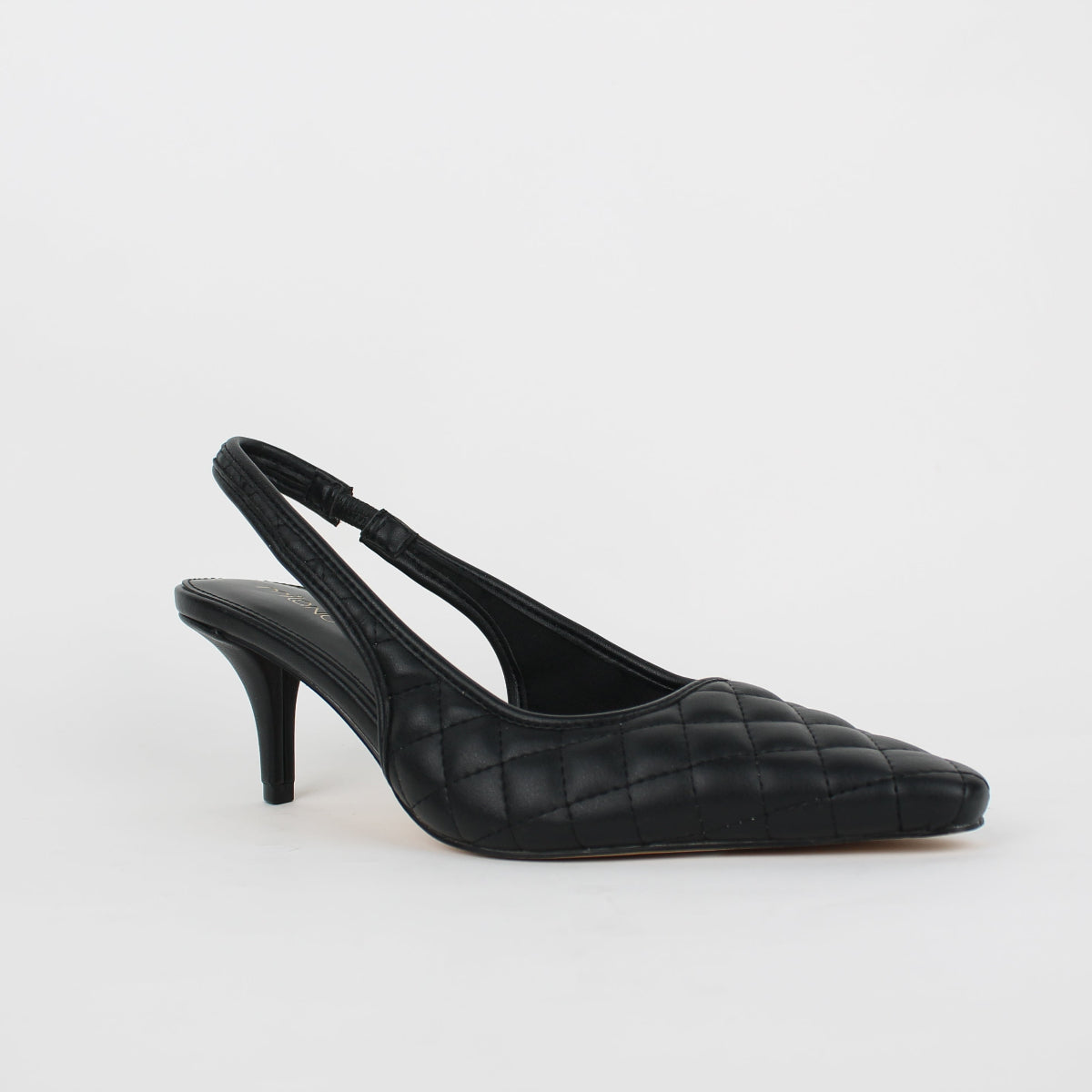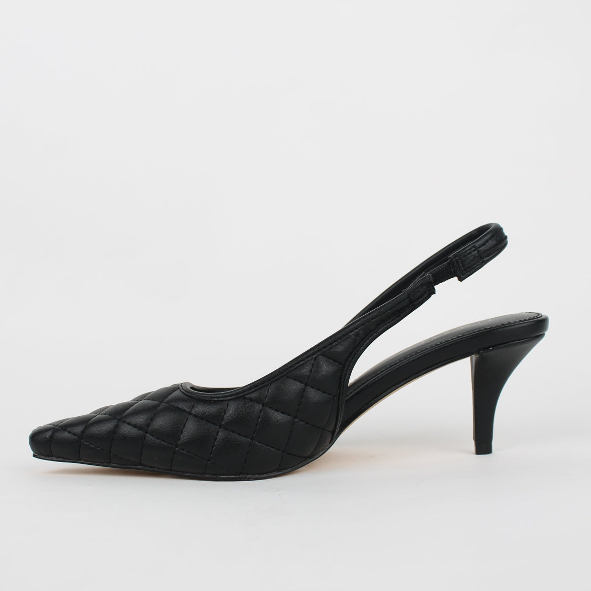 Elevate your look with these sophisticated slingback pumps. Crafted with a soft quilted upper, they feature a classic pointed toe and a sleek stiletto heel for a timeless silhouette. The elasticated slingback strap ensures a secure and comfortable fit, making them a versatile choice for any occasion, from the office to special events.