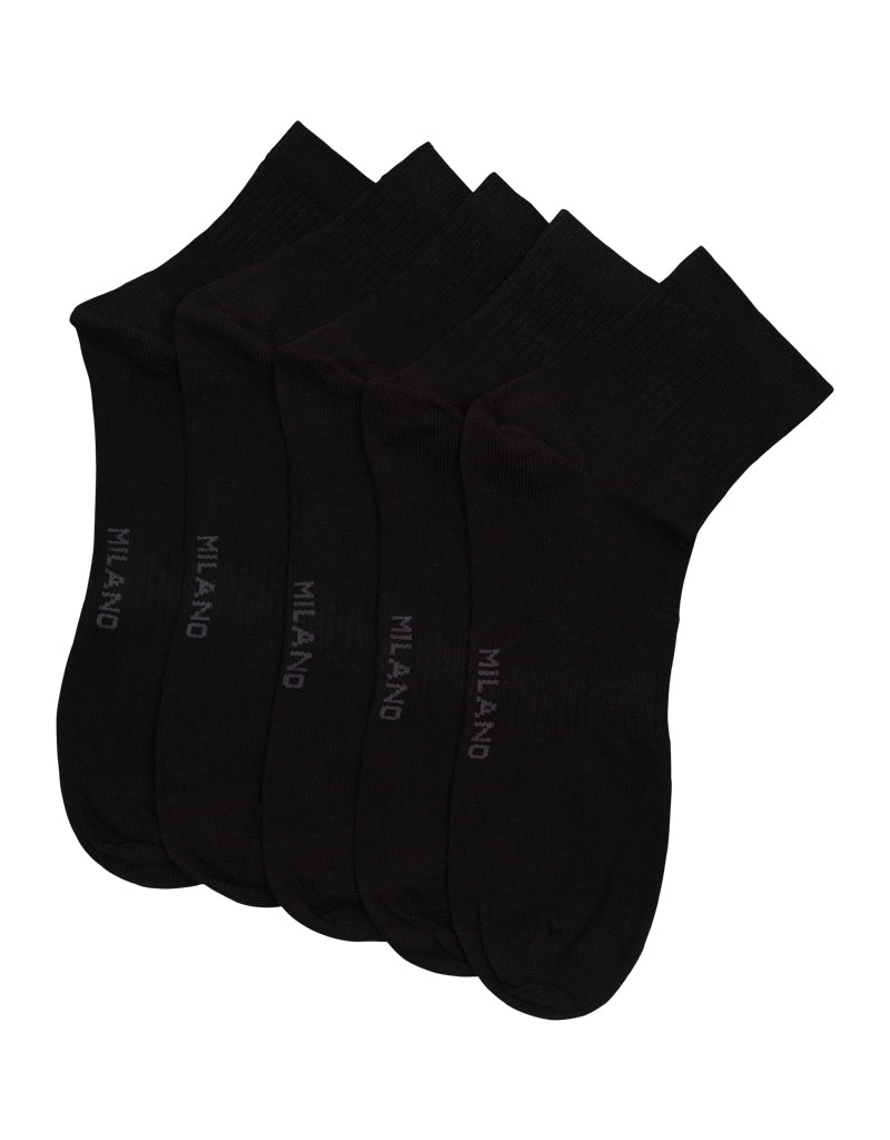 أضف لمسة من الأناقة إلى أحذيتك الرسمية والرياضية مع مجموعتنا المكونة من 5 جوارب سوداء بطول ربع الكاحل، مصنوعة من أجود أنواع مزيج القطن الممشط.