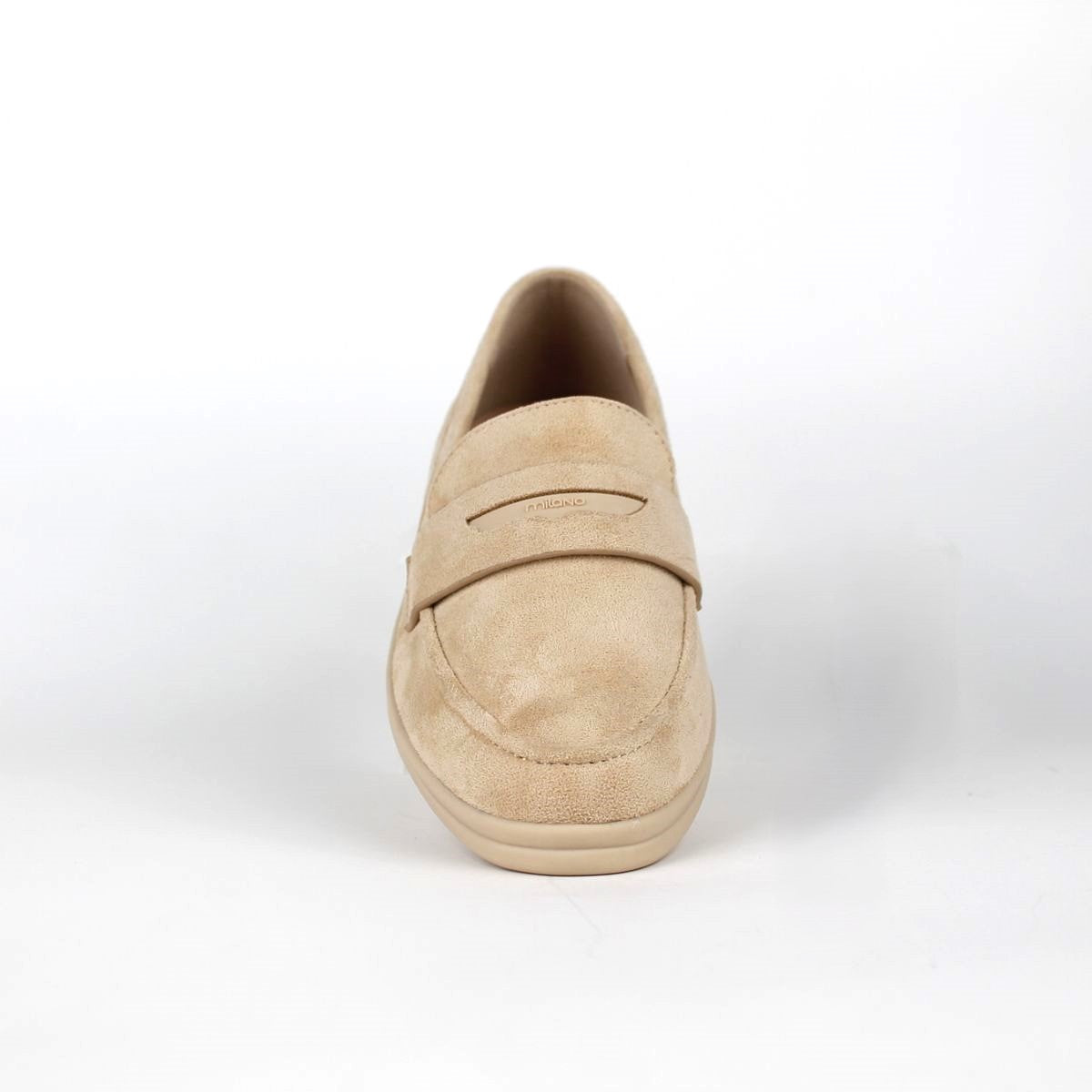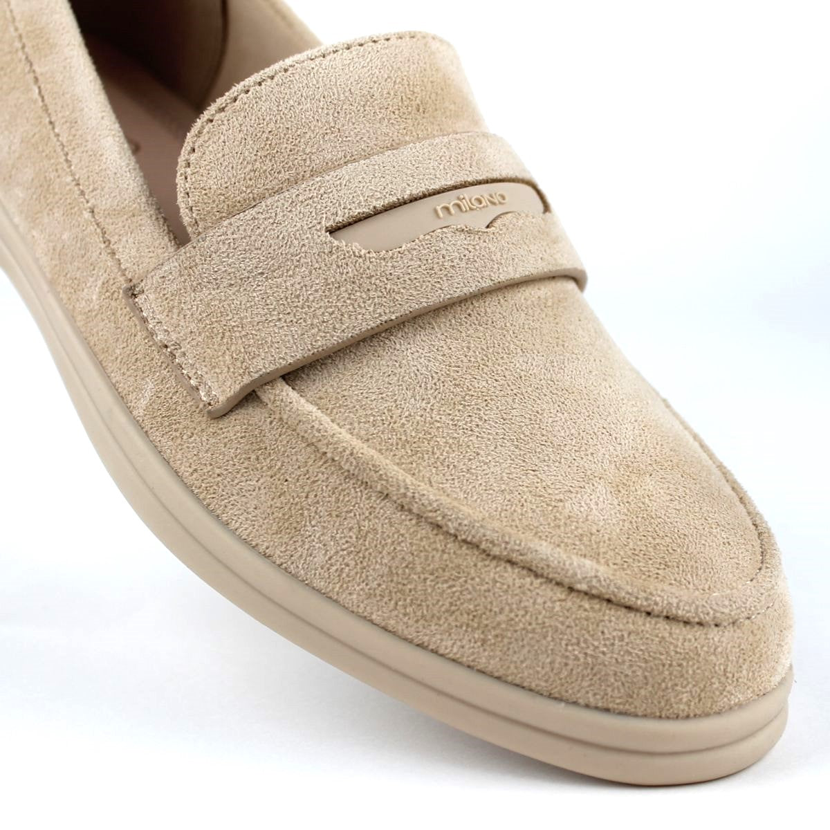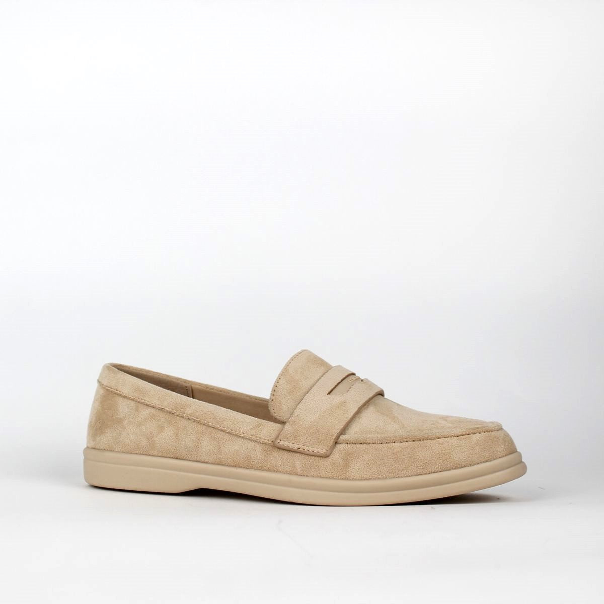Lyra penny loafers, the shoes are made of a suede-like material with a slightly textured or patterned finish. Their minimalist design and low-profile sole make them a versatile choice for both casual and smart-casual attire.