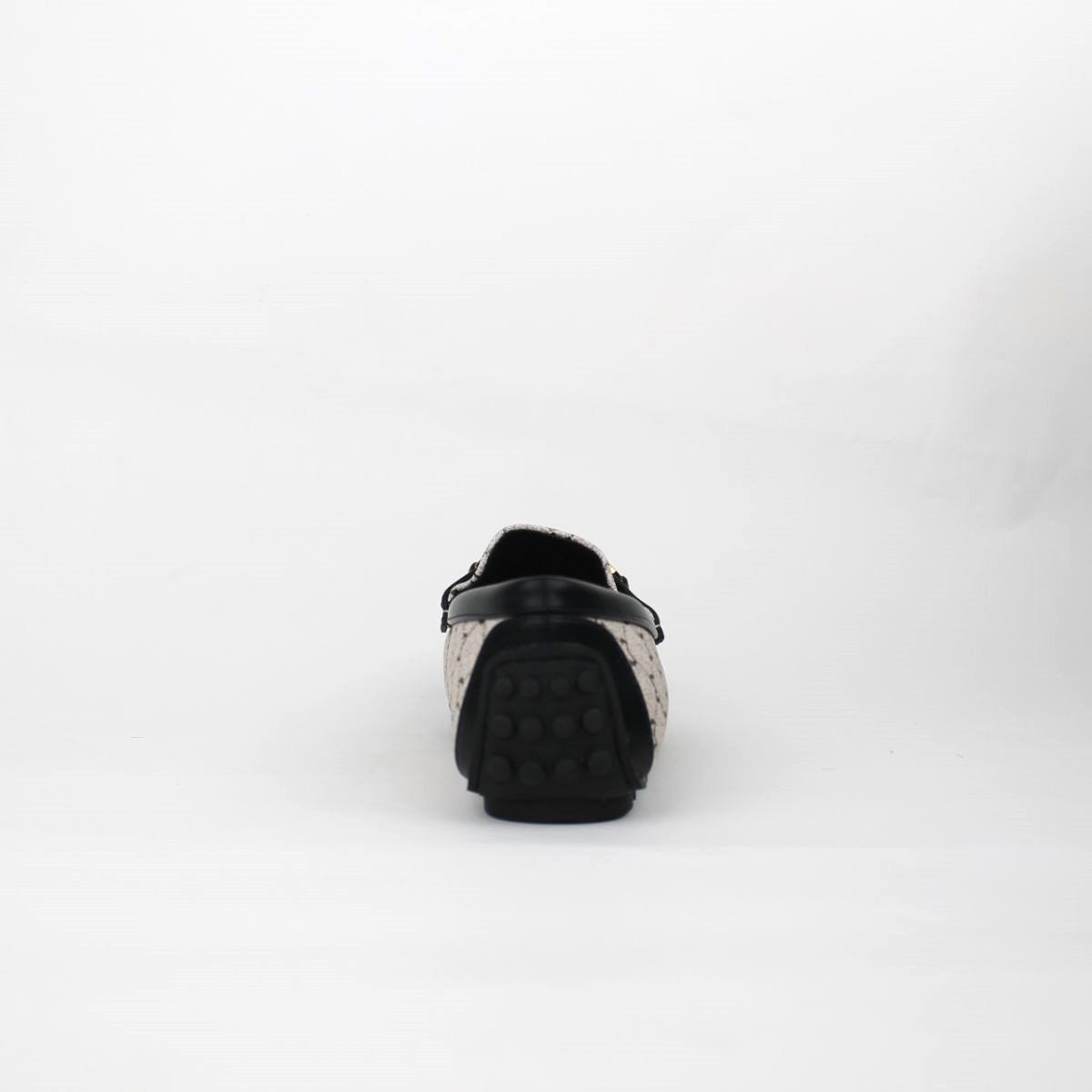Slip your foot into comfort and style with this classic moccasin which showcases a new monogram print on the upper, has a metal trim which makes the whole shoe elegant and a comfort footbed that will keep your feet relaxed all through the day.