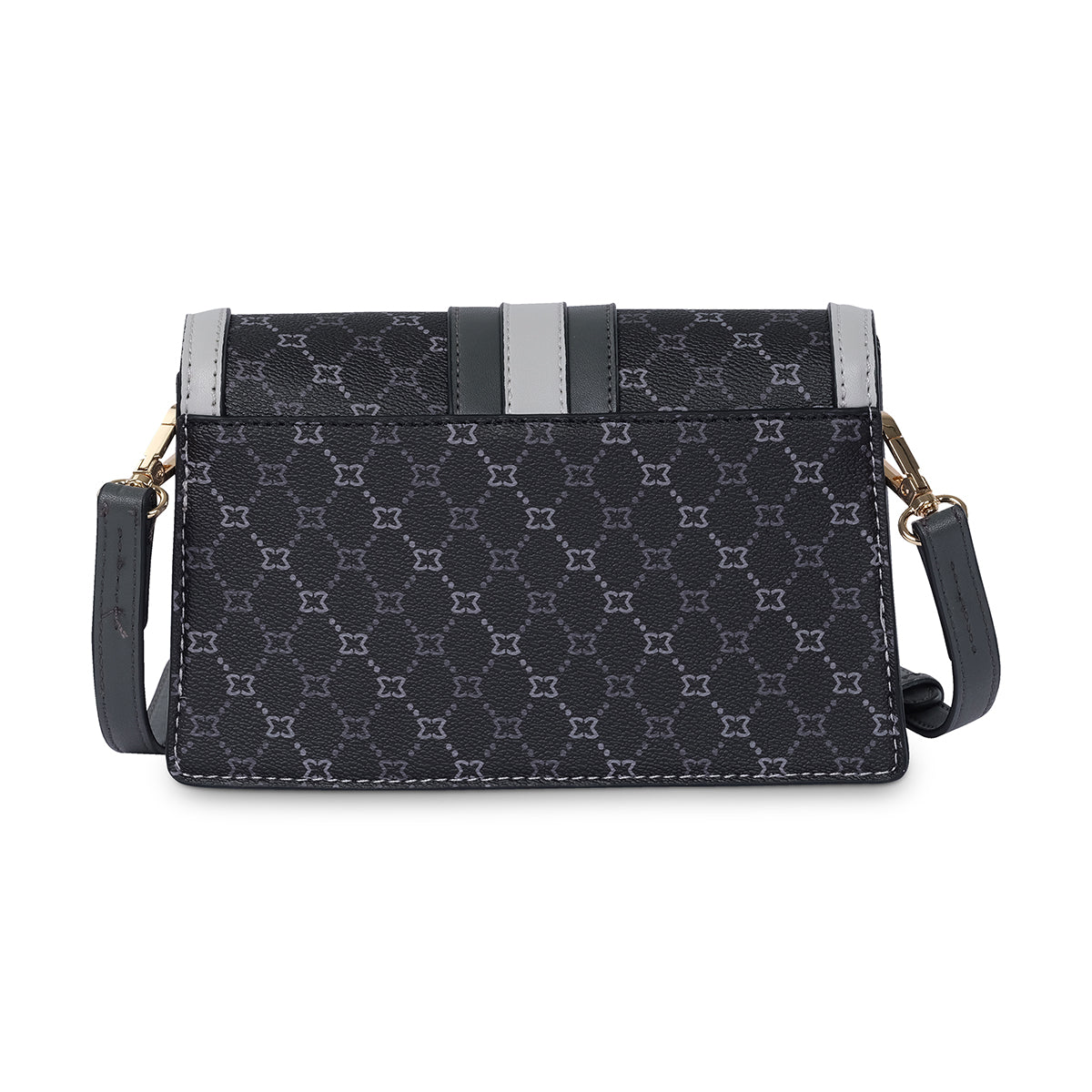 A perfect blend of sophistication and practicality, the 'Hinata' crossbody set is a modern must-have. This structured flap bag features a chic monogram pattern and a bold center stripe.