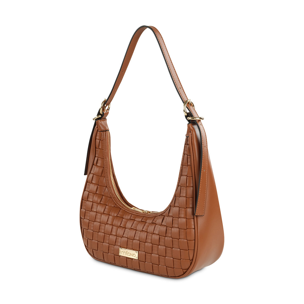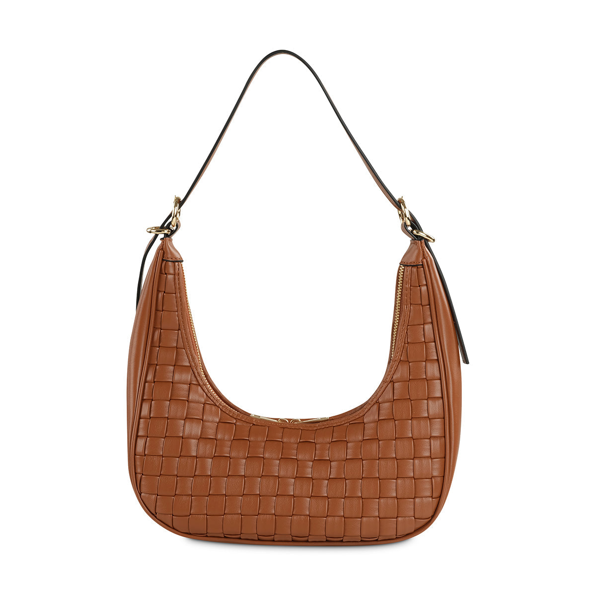 Embrace relaxed elegance with our charming brown hobo bag. Its unique woven texture and soft, curved silhouette are beautifully accented by a bold gold-tone chain detail and a subtle metallic logo. With a comfortable shoulder strap and secure zip closure, this bag is a chic everyday statement.