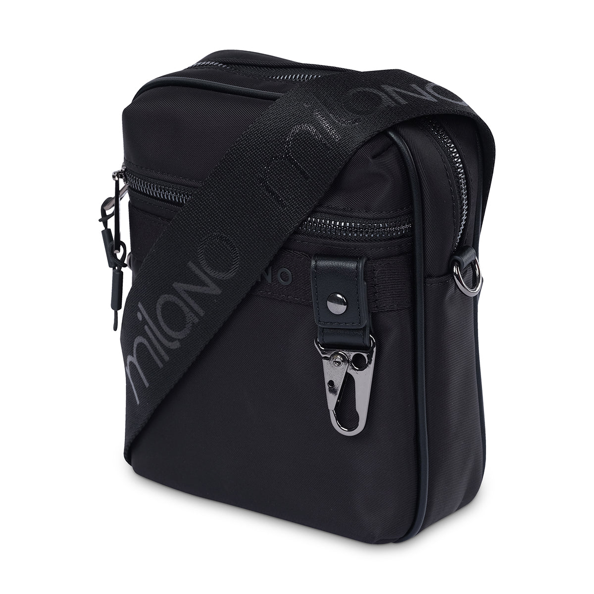 Stay on the move with the 'Ren' messenger bag. This sleek and sporty bag features a durable black nylon design, a branded MILANO strap, and a functional front pocket. Perfect for holding your essentials, it's a versatile choice for everyday wear.