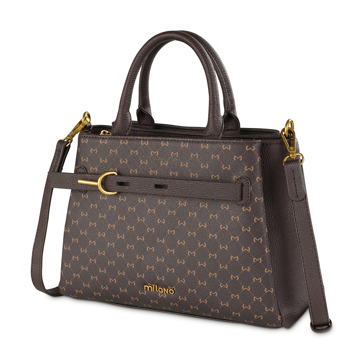 This Brown Milano tote has multiple compartments for maximum functionaility to suit your everyday needs. Showcasing our signature MM logo, Milano trim and incorporating the belted detail seen on the catwalks this season. With additional long strap for dual purpose.