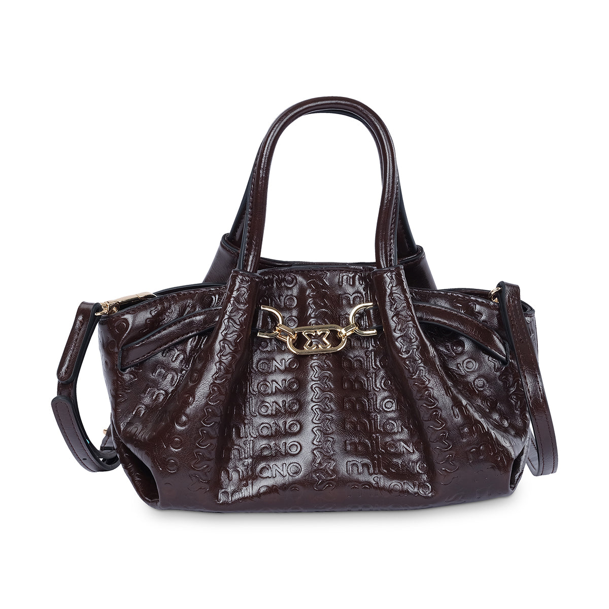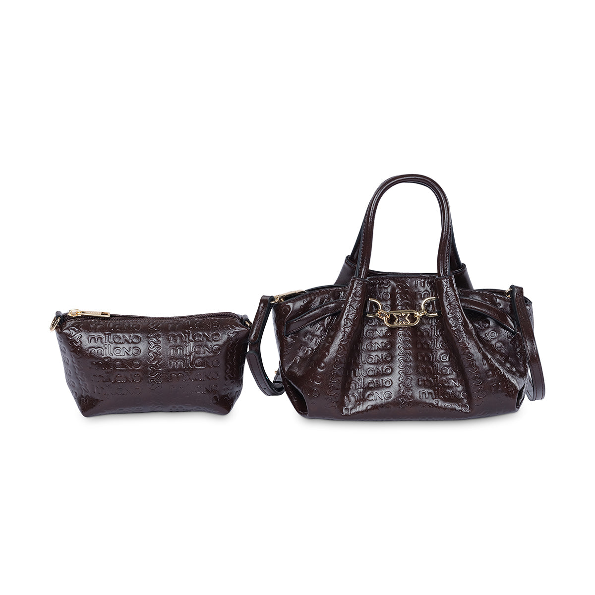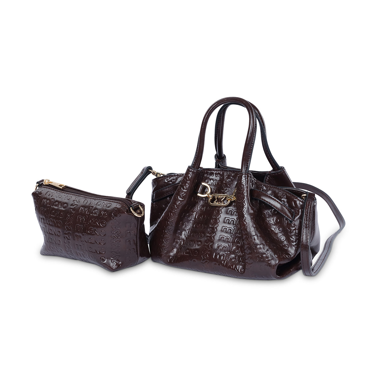 Sophisticated and versatile, the 'Nneka' tote is your new go-to. This bag features a glossy, textured finish and an elegant gold-tone chain detail on the front. It also comes with a matching pouch, making it perfect for keeping your essentials organized while on the go.