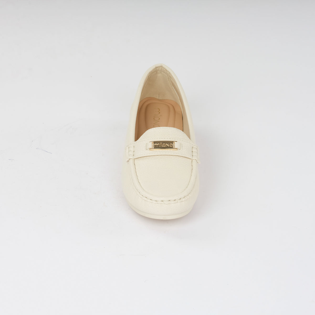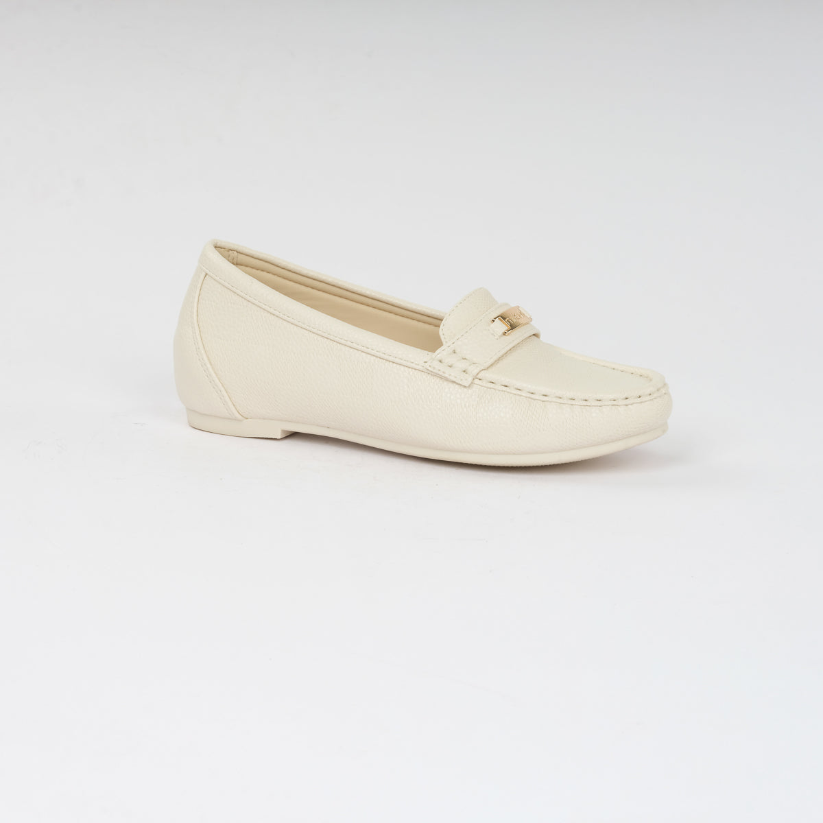 Sleek cream checkered leather moccasins with a classic slip-on design and refined strap detail. A versatile choice for understated elegance and everyday comfort.