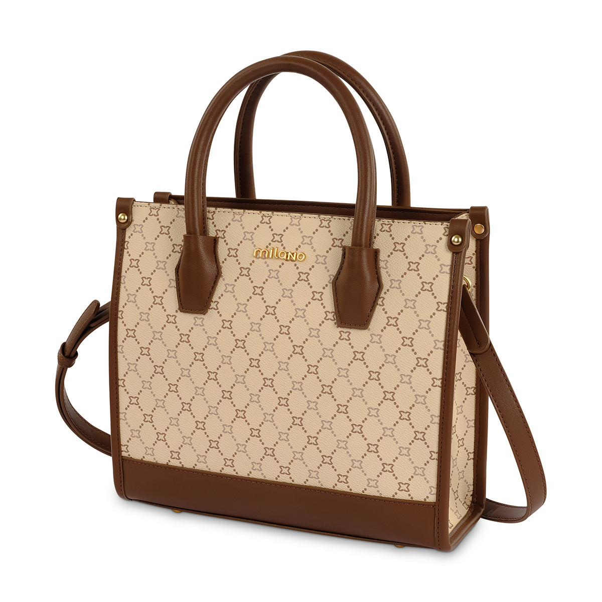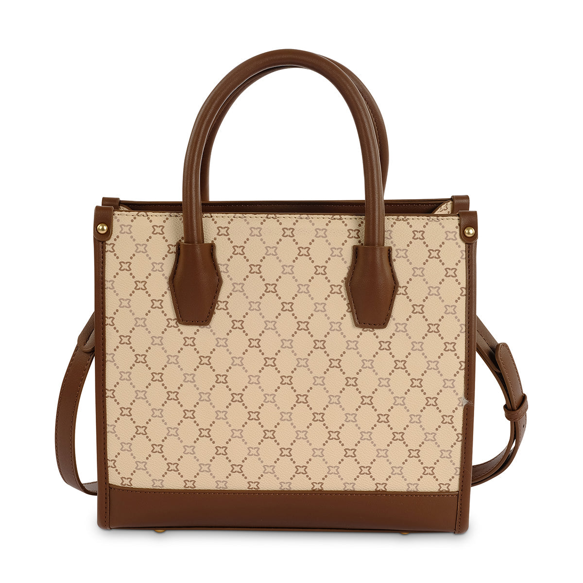 Elevate your look with The Natalie Tote, a modern twist on the classic tote. Featuring a chic all-over monogram and rich brown accents, this structured design blends style with versatility. Unique top handles and bold branding make it the perfect statement piece—whether you’re heading to the office or out for the day.