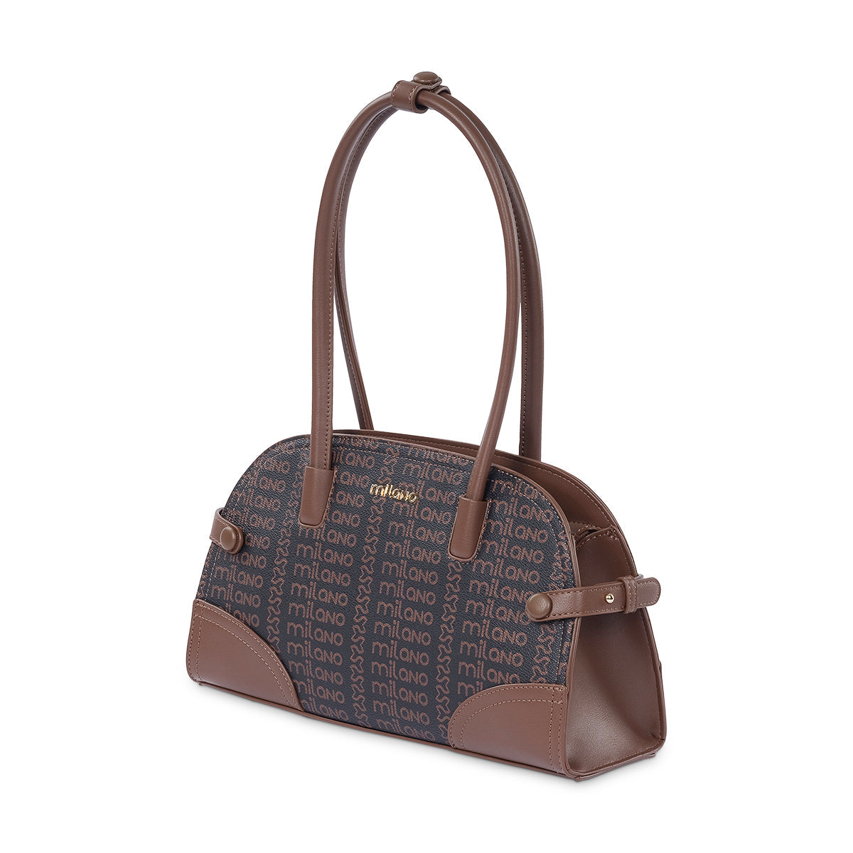 Add a touch of timeless sophistication to your look with the 'Milano' bowling bag. This bag features a rich, brown monogram pattern and elegant top handles. Its classic silhouette and spacious interior make it the perfect accessory for both daily use and weekend getaways.