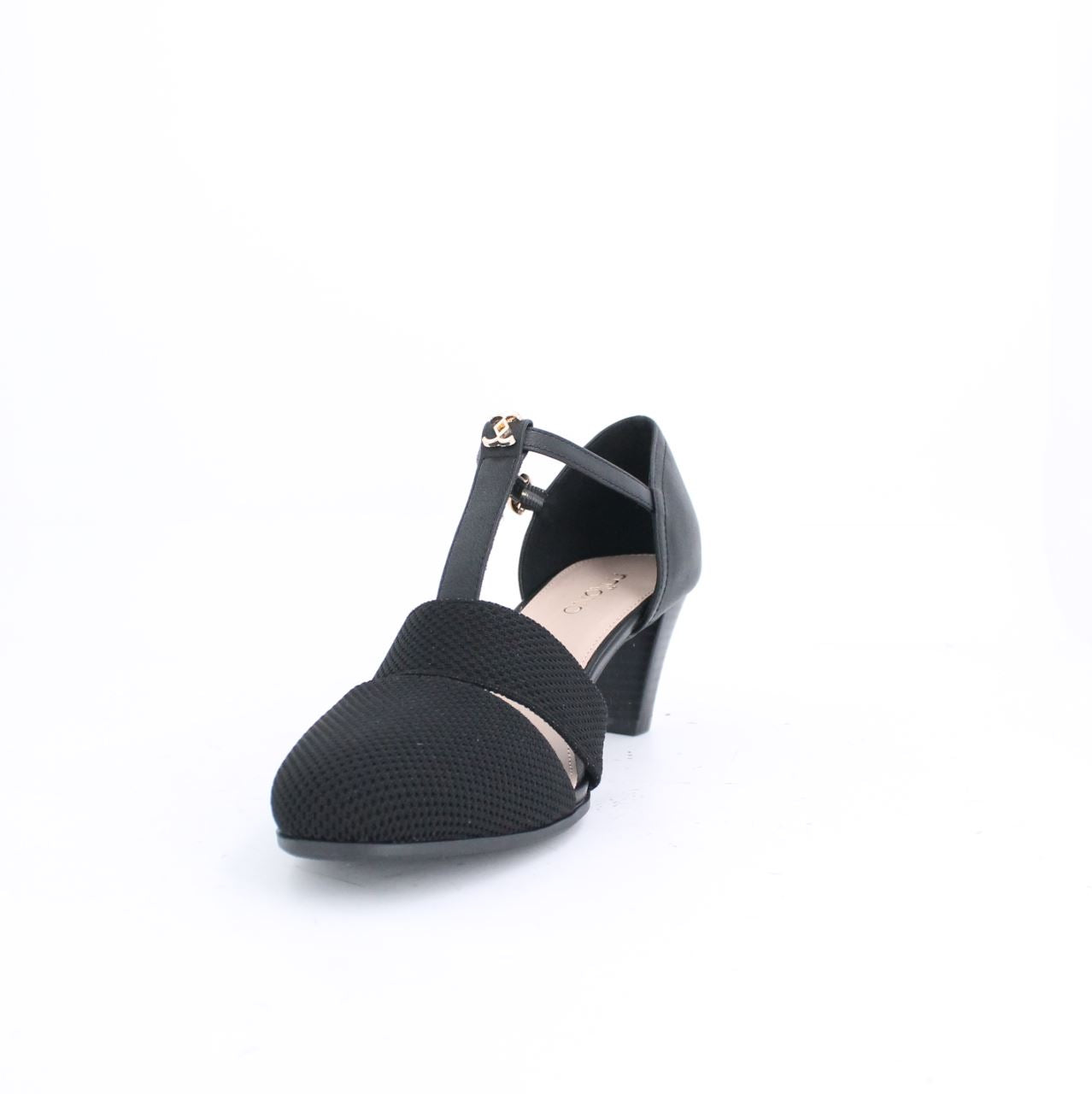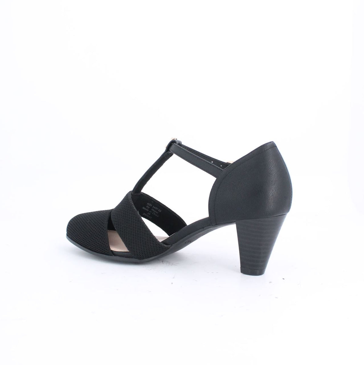 Refined and stylish, these women's T-strap pumps feature a unique two-tone design, with a classic mesh texture on the vamp and an elegant monogram pattern on the back. The comfortable mid-height cone heel with a wood-grain finish provides a stable lift, while the round toe offers a more comfortable fit than traditional styles. Secured with a T-strap and an adjustable buckle to ensure a personalized and secure fit, making them a perfect blend of elegance and functionality.