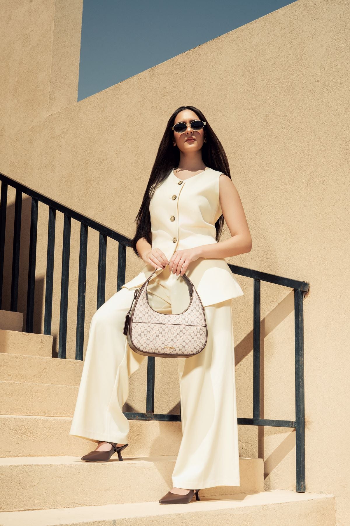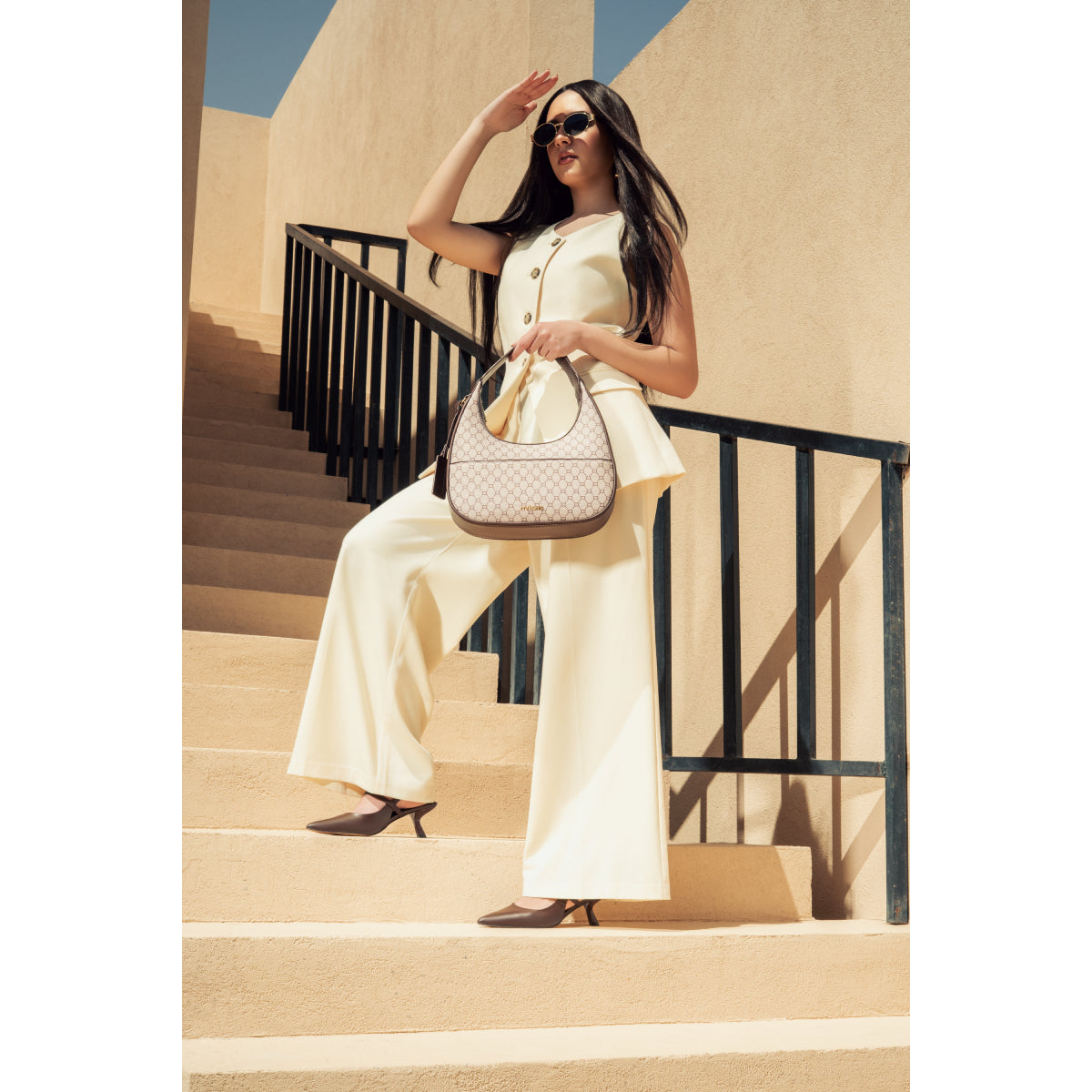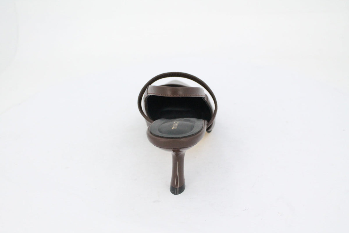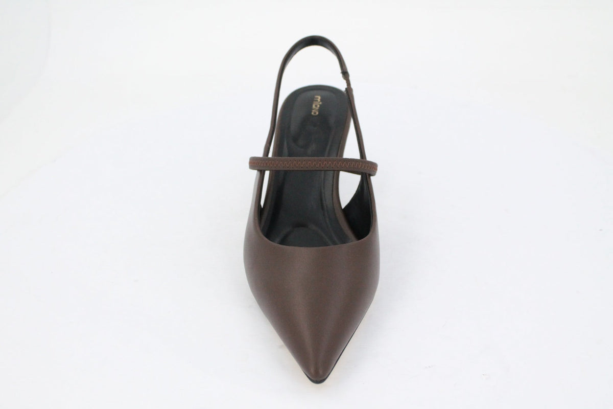Elevate your everyday style with this timeless brown slingback. Featuring a pointed toe, elegant curved heel, slim strap detailing, and golden sole. It offers both sophistication and comfort. It comes with a matching bag for a coordinated look, perfect for workdays or evenings out.