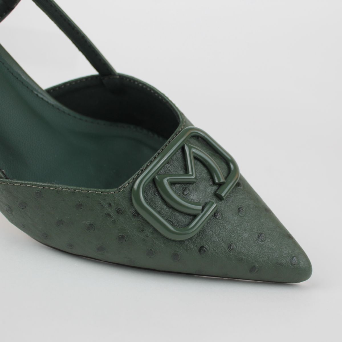 These sophisticated slingback pumps, crafted in an ostrich-textured finish, are a versatile addition to any wardrobe. Featuring a sharp pointed toe and a sleek stiletto heel, they exude elegance making them perfect for both professional and evening occasions.