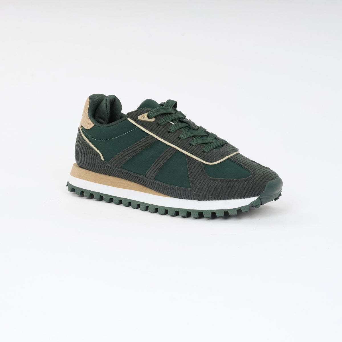 Step up your style with these sleek green sneakers featuring beige accents and a rugged sole, perfect for all-day comfort and effortless cool.