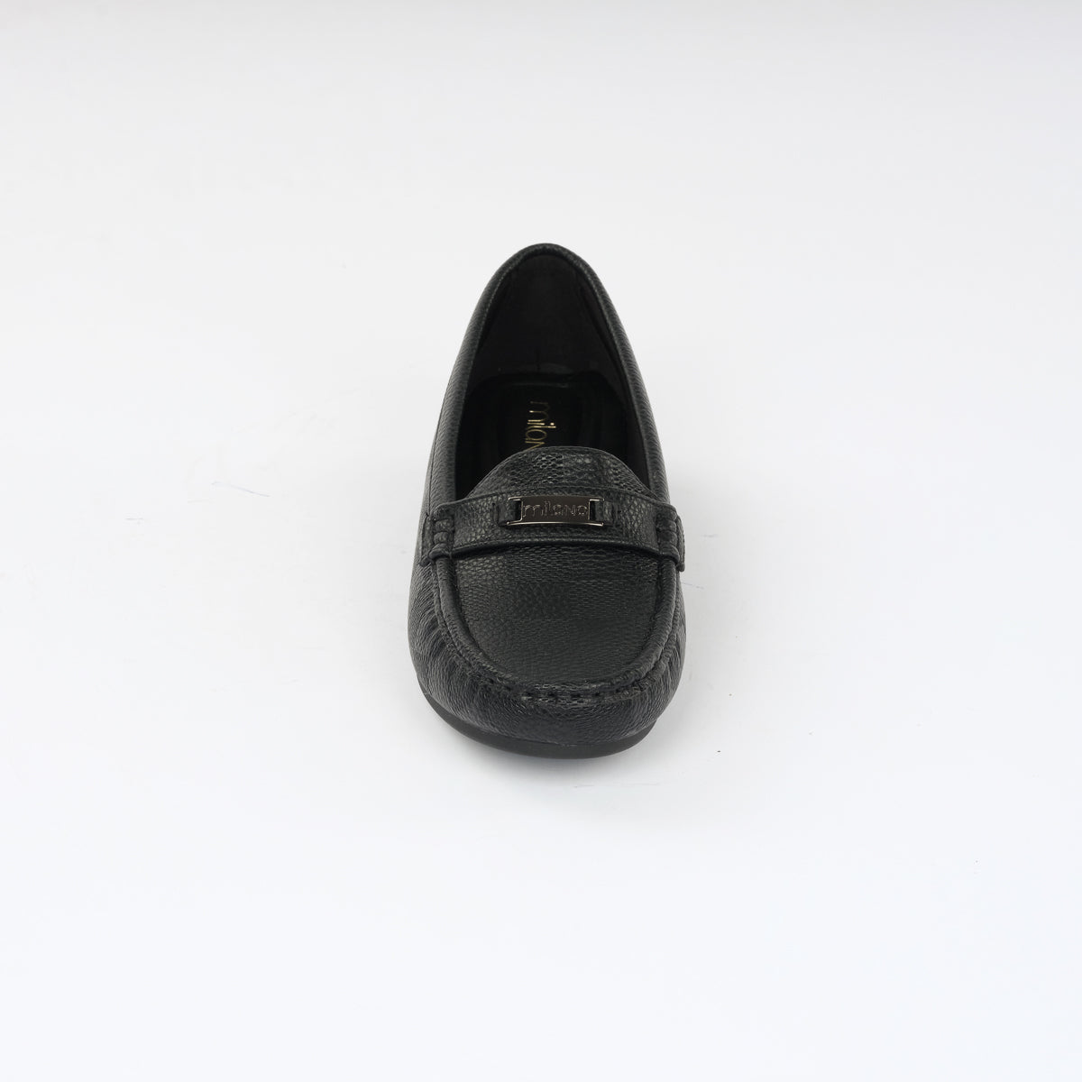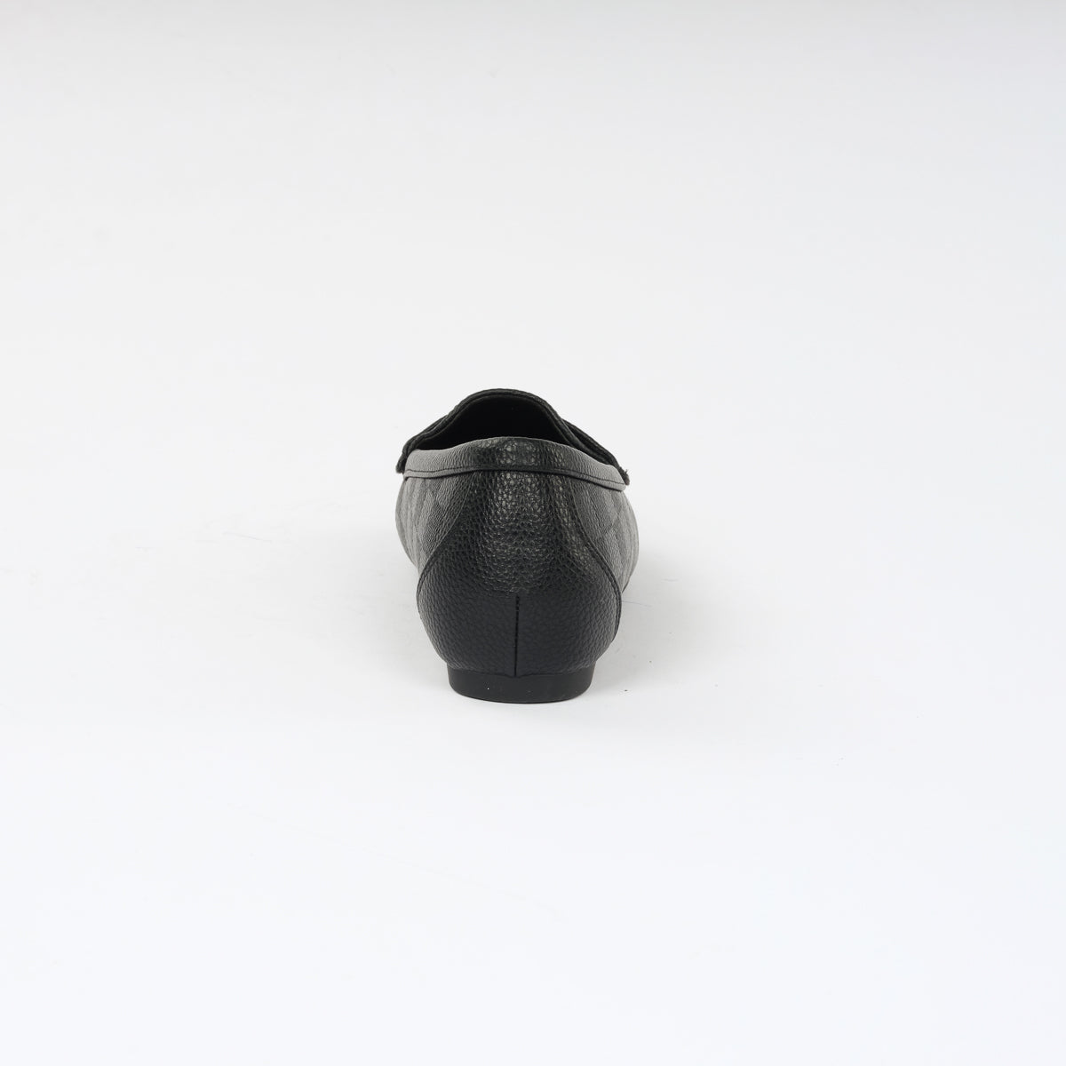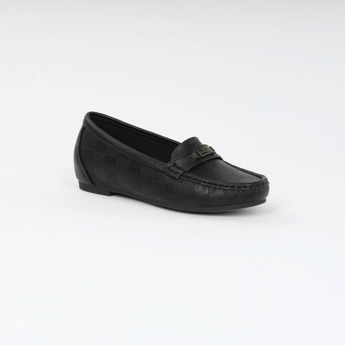 Sleek black checkered leather moccasins with a classic slip-on design and refined strap detail. A versatile choice for understated elegance and everyday comfort.