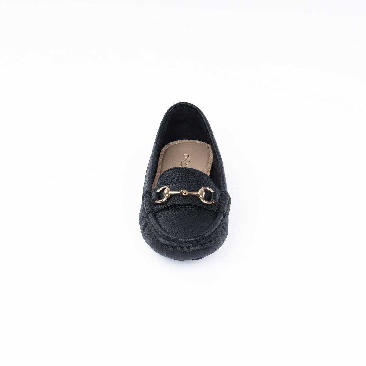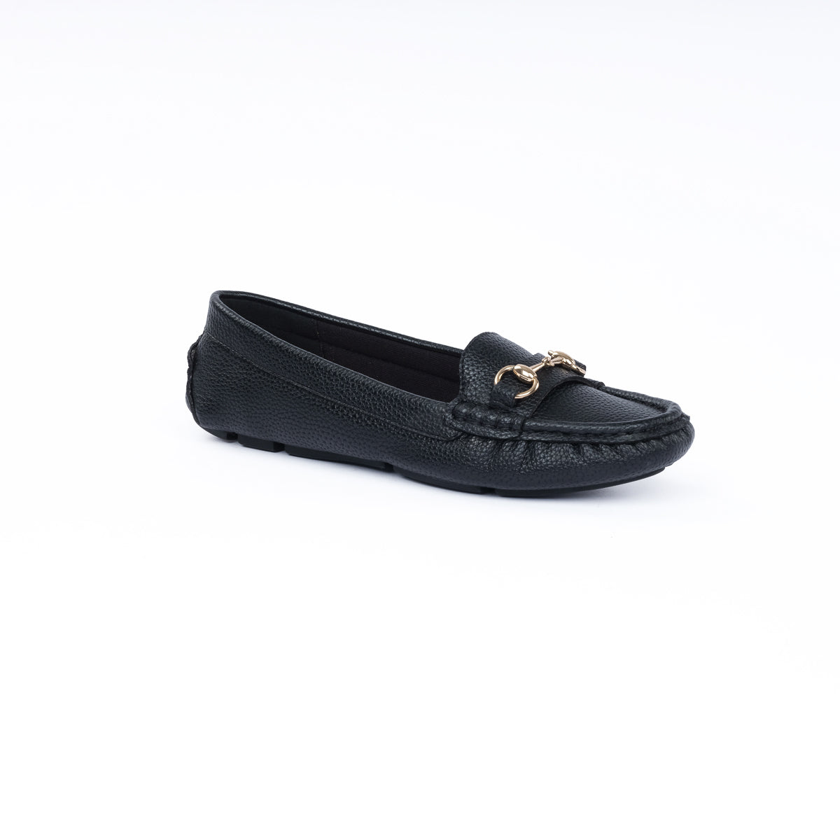 Classic elegance meets comfort,black moccasins with a sleek finish and metallic detail for a timeless, versatile look.
