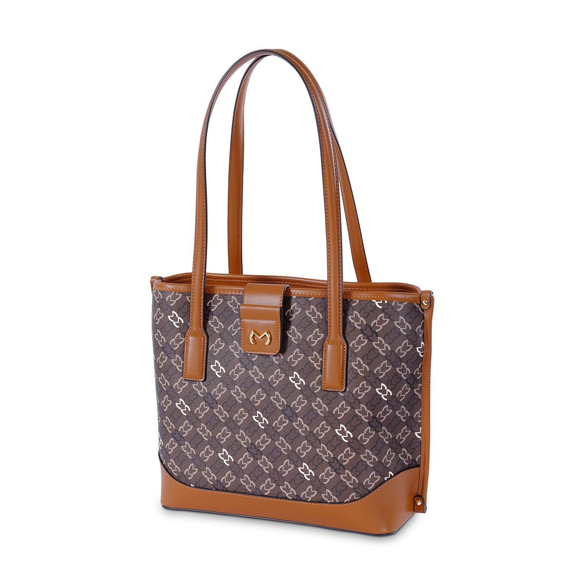 Meet the 'Milano' professional handbag, a structured bag that blends classic style with modern details. Crafted in a durable monogram material, this bag features refined handles and a central clasp for both style and functionality. It’s an ideal choice for the office or a chic outing.