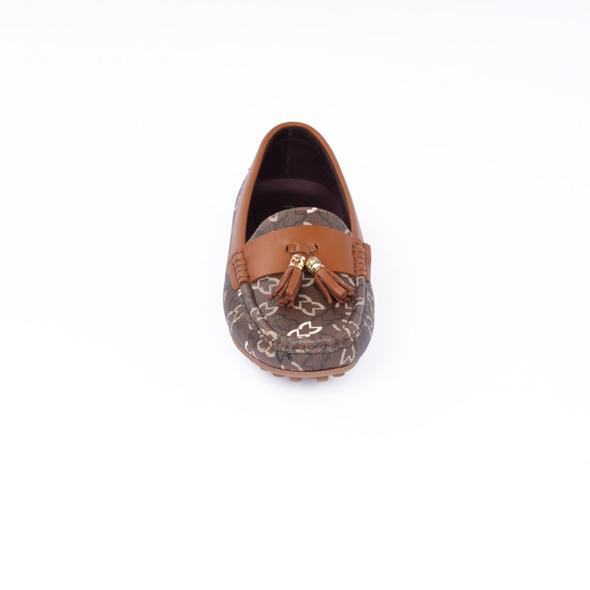 Chic and classic, brown moccasins with elegant tassels and signature monogram print for a refined, stylish finish.