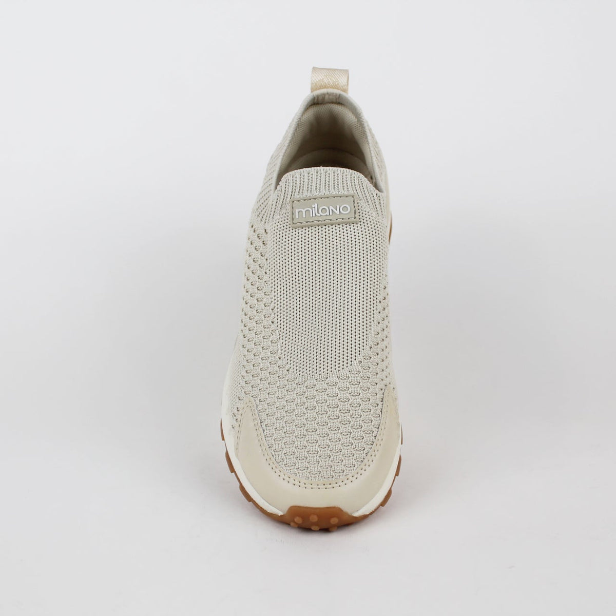 This sleek and modern unisex sneaker offers a perfect blend of comfort and style. The design features a breathable knit upper for a comfortable, sock-like fit, accented with smooth panels. Built on a stylishly sculpted, off-white platform sole, this slip-on shoe provides both an elevated look and superb comfort. Its easy on-and-off design and rugged outsole make it the perfect choice for anyone looking to add a sporty yet sophisticated touch to their everyday look.