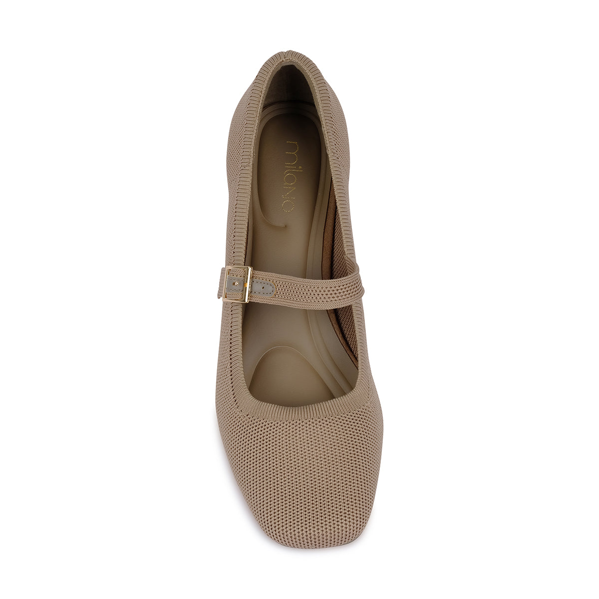 Classic beige Mary Jane shoe featuring a soft textured upper, adjustable buckle strap, and low block heel for comfort and stability. Perfect for everyday wear or smart casual occasions